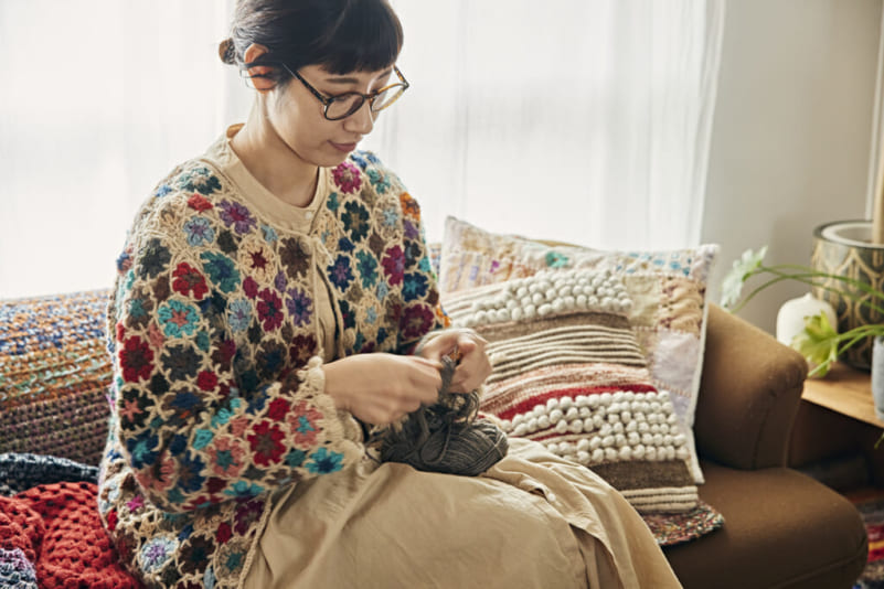 ニット帽や手袋をよく編んでくれた母の影響か、私も編み物をするように。無心になれる大切な時間です。