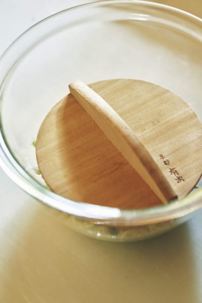 煮物に使う木の落としぶたは、浅漬けにも便利。
