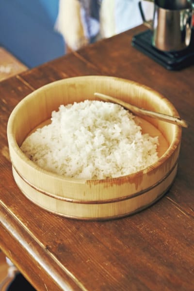 サワラ材の香りが漂う「木曽さわら すし飯台」。おにぎりを握るときやそうめんにも。