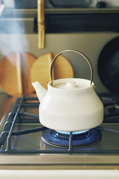 「かもしか道具店」の陶製のやかん。シューっと鳴る湯気の音に癒やされて。