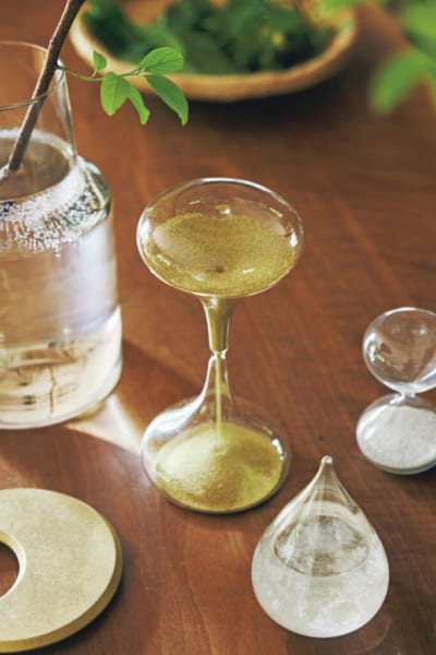オンラインショップというスピード重視の仕事をしているからこそ、なんでも効率主義になりすぎないよう、あえてスピードダウンする必要性を感じています。キッチンカウンターを整えてろうそくを灯したり、デジタルタイマーではなく砂時計で時間を計ったりするのは、揺れる炎や、流れ落ちる砂を眺めることで、ゆっくりとした時の流れに意識を向けることができるから。アナログな道具はちょっと不便だけれど、忘れていた感覚を思い出すのにひと役買ってくれます。