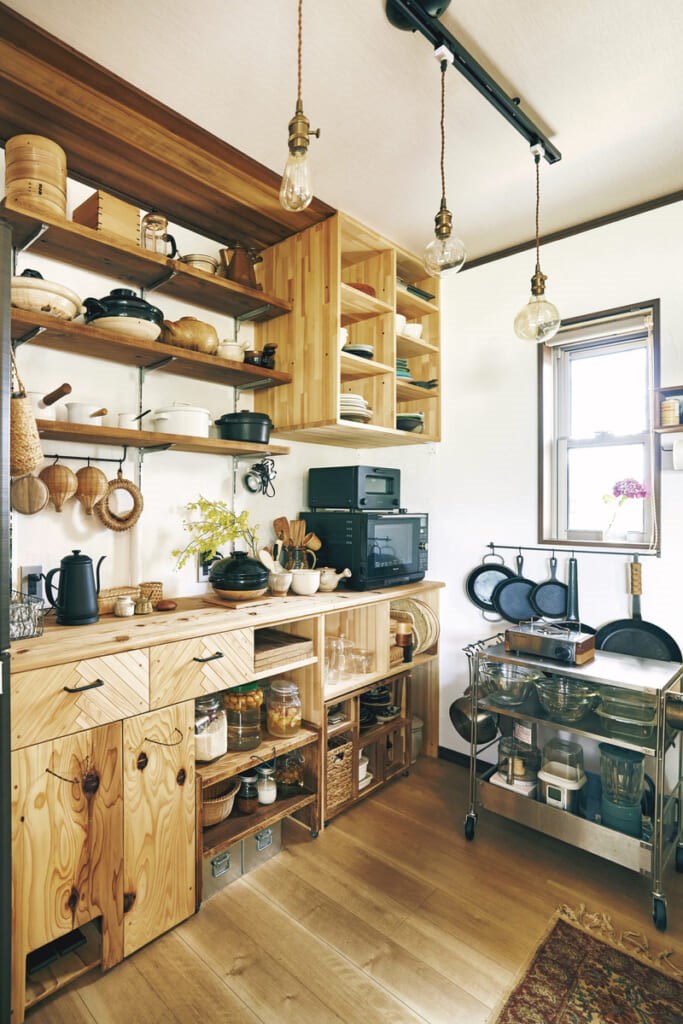 わが家は、結婚の際に夫の実家のガレージ部分を利用して増築してもらった二世帯住宅です。それまで実家暮らしだった私はキッチンの仕様について考えたこともなくて、業者さんまかせにしてしまったんです。実際に自分がキッチンに立つようになって初めて〝ここに棚があったら〟とか〝オープン収納にすればよかった〟と後悔しました。 私があんまりぼやいたからでしょうか、ある日夫が 、「俺が作る」と言い出したんです。