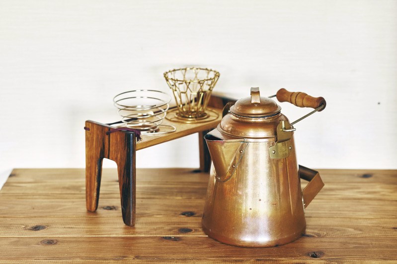 「グランマコッパーケトル」は夫婦そろってひと目ぼれしたもの。コーヒードリッパーとともにふだん使いに。