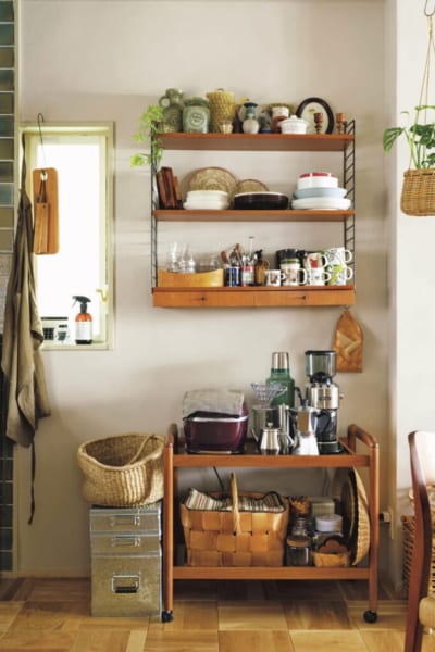 スウェーデンの「String」の棚をお気に入りの器のディスプレイに。