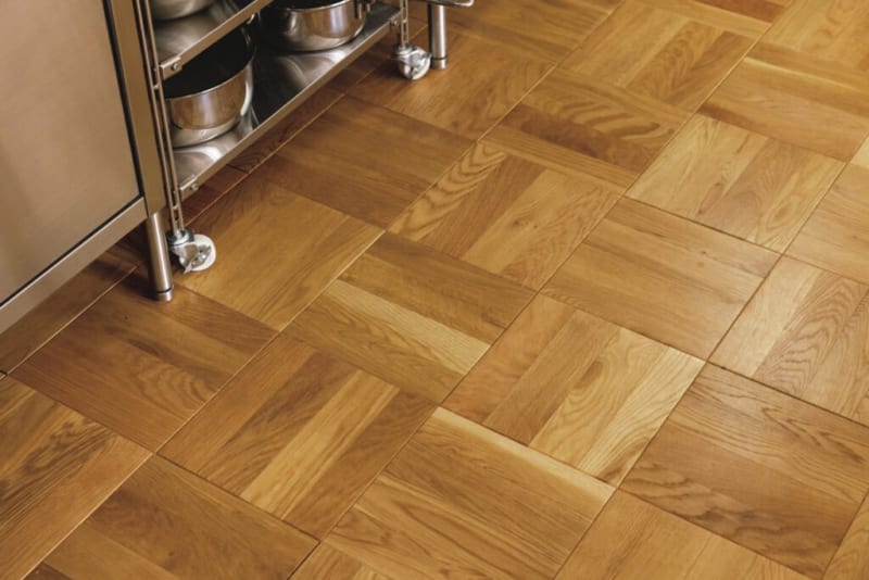 フローリングは「アナログ」のオークパーケット。30cm角が多いなか、小さめの24cm 角にこだわりました。