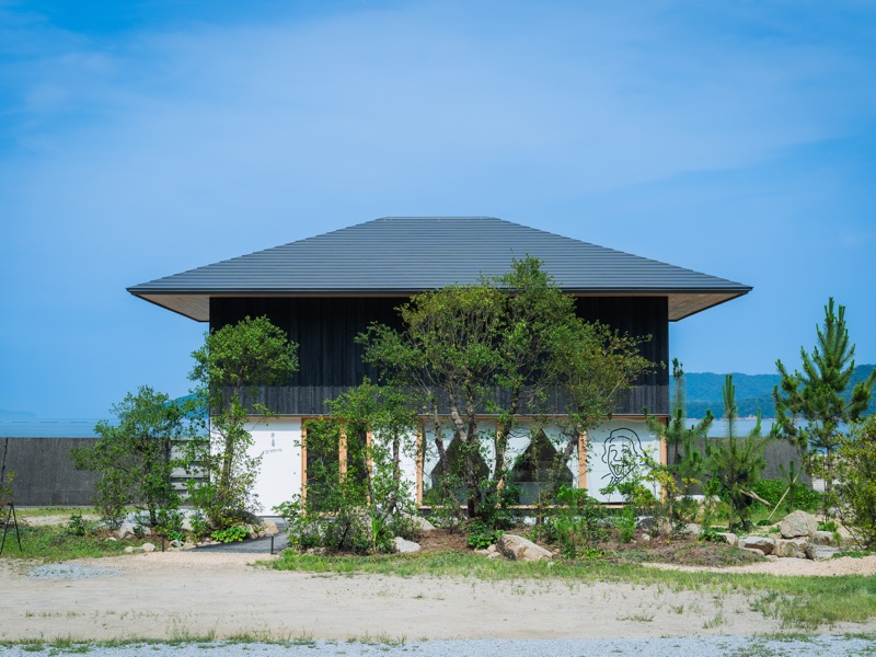 お店は自然豊かな場所にあり、四季折々に表情を変える庭や、山の風景、海の絶景もお楽しみいただけます。夕方、大きな窓にかけられたのれんに映る木々の影もまた移ろいゆく時間を感じさせてくれます。