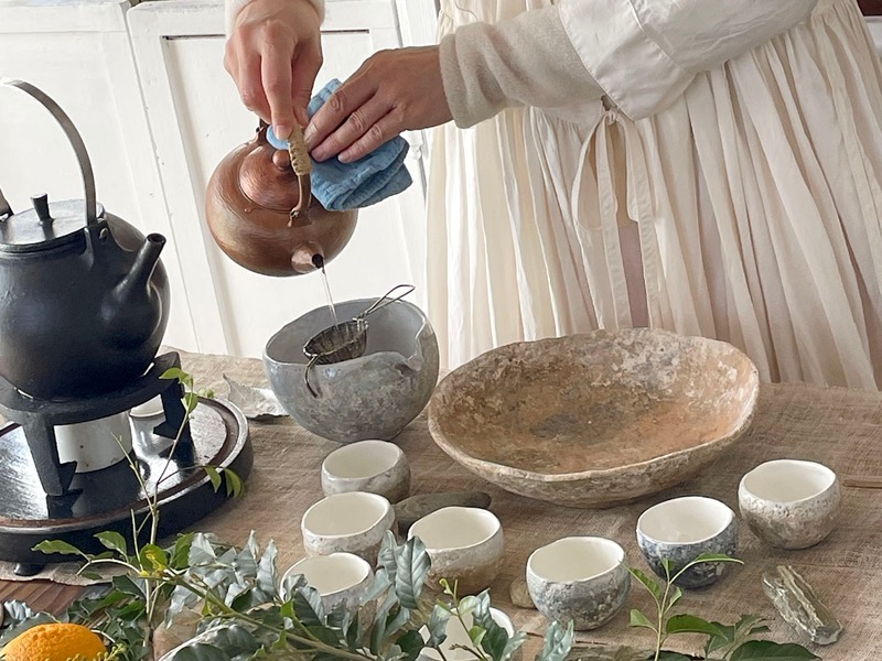 そして現在、2024年に新たに建て直した店舗では、1階に常設展示、石鹸ラボ、お料理教室やカフェを、2階にはギャラリースペースを設け、アート系のワークショップや展示会を開催しています。毎月一度は、作家の個展や私自身がセレクトしたアイテムの展示を行うほか、季節の移ろいを感じながら語らうお茶会なども開いています。訪れる人と“モノ”そしてそれをつくる“ヒト”との出会いが生まれるあたたかな空間づくりを目指しています。