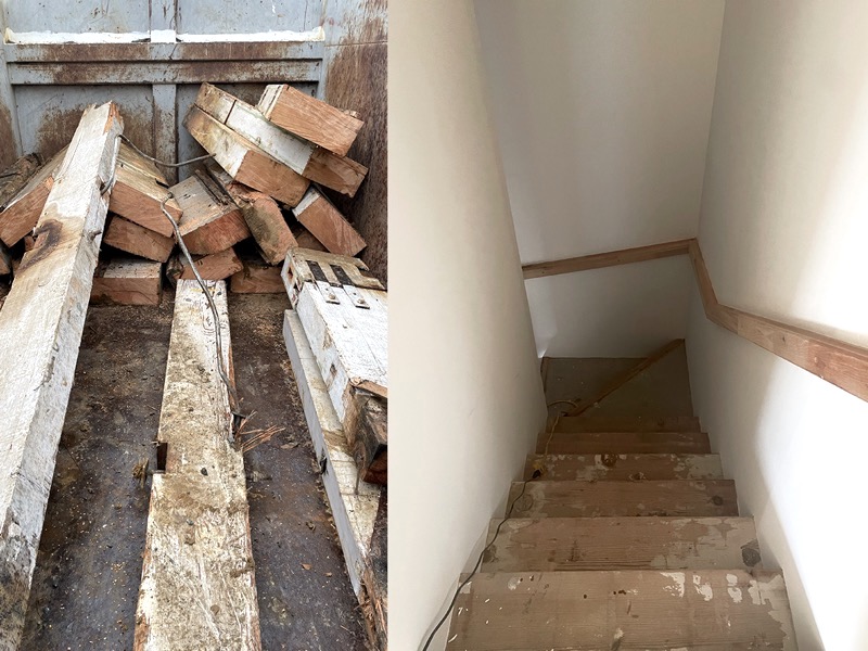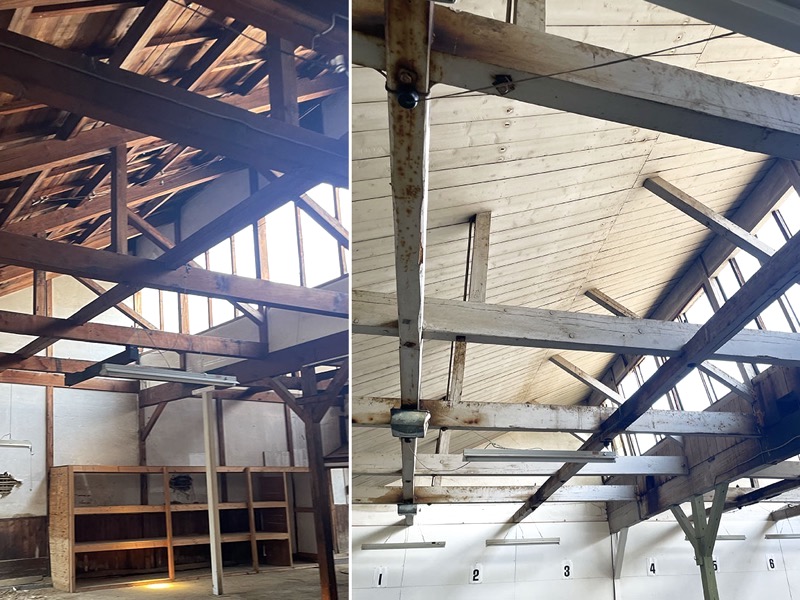 廃業された織物工場から譲り受けた、立派な柱や梁、古い木材。それらは、新材を使うほうがはるかに効率的で、古材は寸法を合わせたり、癖を読んだり、手間のかかる工程がいくつもありました。それでも、この木に刻まれた時間の深みは、他の何かでは代えられません。新しい場所で息を吹き返す姿には、やはり喜びを感じます。