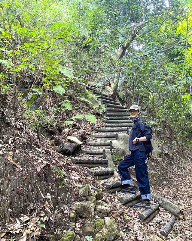 足首をしっかりホールドしてくれるハイカットタイプのトレッキングシューズなら、こんな急な階段や坂道もなんのその。つまずいたり踏み外したりしにくいので、ねんざも予防できて安心感があります。
