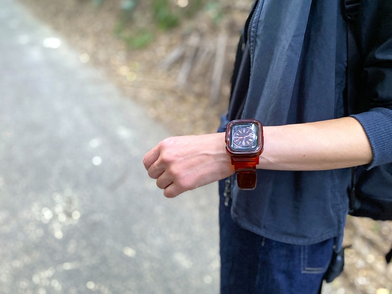 こちらのアップルウォッチも、散歩のときの必須アイテム。ブラウンカラーのカバーは「ゴツめのバランスがかわいいなと思って」と「ZOZO TOWN」で購入したそう。