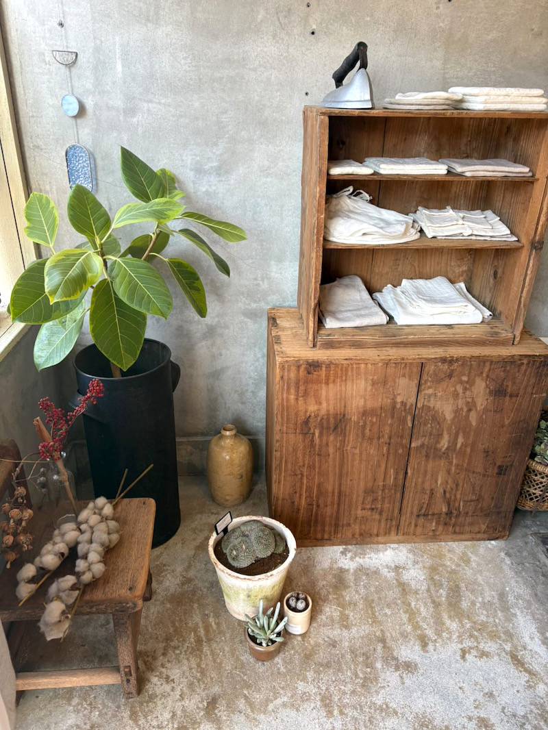 お店は今年で15年目を迎えます。当時、地元で好みの服や生活用日を選ぶお店がなく、息子が小学5年生になりあまり手が掛からなくなった事、古道具のお店「スケールスアパートメント」との出会いが重なり「お店を開く!」と決断して2か月でオープンしました。
