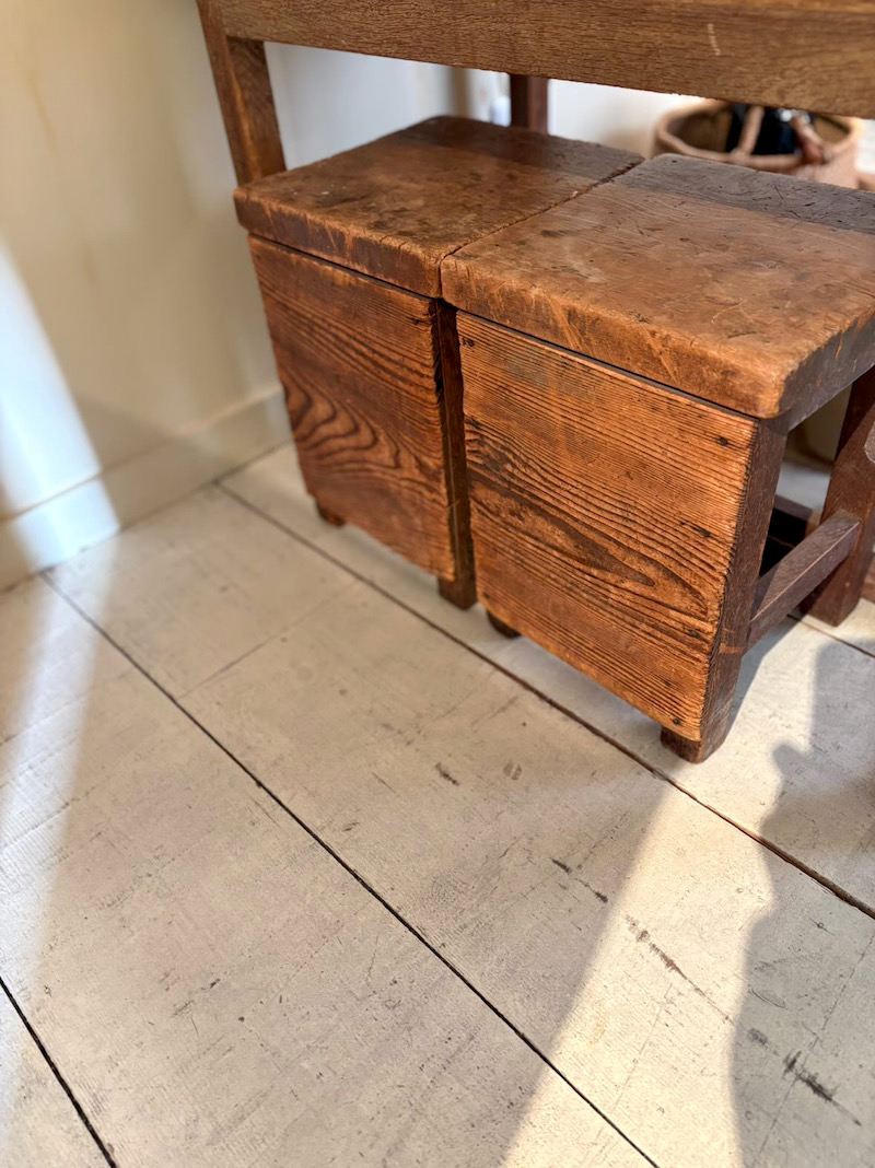 お店にもいろいろな場所で活躍中。ワークショップで使う図工椅子。