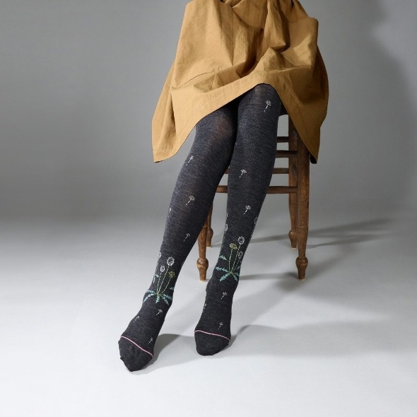 京都とフランスを拠点に活動されている寄神さんとのやりとりは、行ったことのないフランスの景色をふわりと思いおもいおこさせてくれる不思議なひととき。秋冬がくるたび楽しむウロコタイツやタンポポタイツはお出掛け用の楽しみで、’引っ掛けたり汚したりしないように気を付ける小物 '引き出しに入れています。土井が好きなテキスタイルの靴下とタイツを届けていただきます。