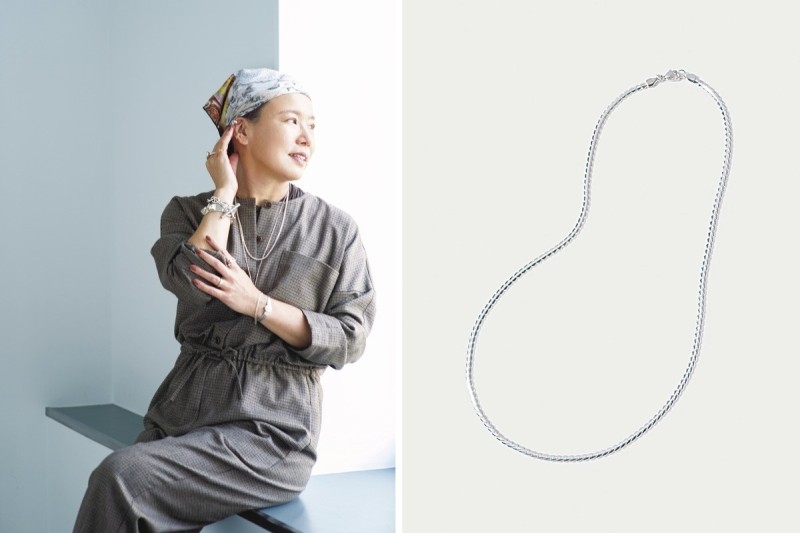 本誌P.57~「大人のカジュアルはシルバージュエリーで格好よく。」特集に登場している本間利絵さん。本間さんがディレクターを務めるブランド「ピモンテ」から、シルバーチェーンネックレスを2名様にプレゼントいたします。純度の高いシルバー925を使い、スネークチェーンのように、しなやかに首に沿うデザインに。肌にやさしくなじむ上品な輝きで、シンプルでありながらも抜群の存在感を放ちます。48cmの長さがほどよく、重ねづけしやすいのも魅力です。