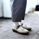「ブリティッシュグリーンとブルーの配色がデニムにも映えます。大判ですが、やわらかいのでコンパクトに巻くこともでき、Tシャツ姿のアクセントにもなるすぐれものです」と馬場さん。90㎝×90㎝で、肌ざわりのやさしいコットン100%。