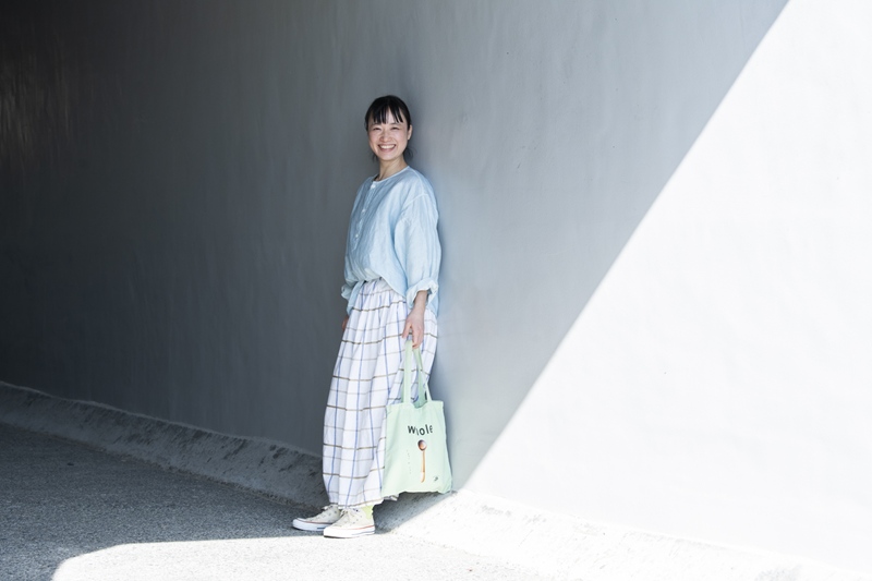 宮薗さんの普段着はオーバーオールやワイドパンツなどラフな装いが中心、素材は着ていて心地いいコットンかリネンがほとんどです。ワイドシルエットのパンツやふんわりしたギャザースカートは風通しがよいため、暑い時期も快適に過ごせます。「40代を迎えたころから好きな形や素材、色が定まってきたことで、流行に左右されなくなったのを実感。けれどマンネリに陥りがちではあるので、少しどこかに変化をつけるなど、なるべく違った心持ちでおしゃれを楽しむようにしています」